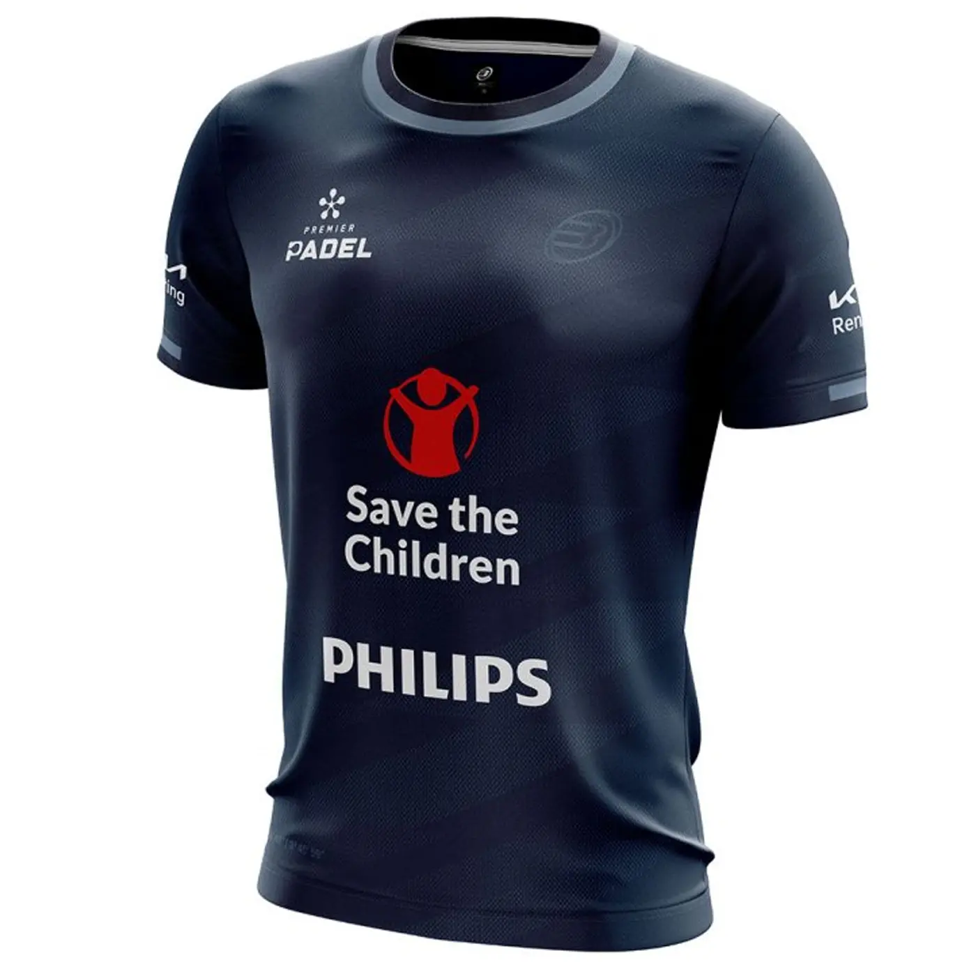 El diseño incorpora un estampado gráfico sublimado, detalles de contraste en el cuello y logotipos oficiales del jugador en espalda y mangas, junto al distintivo logo Premier, ofreciendo una estética auténtica de competición. Una camiseta pensada para jugadores que buscan rendimiento profesional, confort técnico y un look de élite, tanto dentro como fuera de la pista.