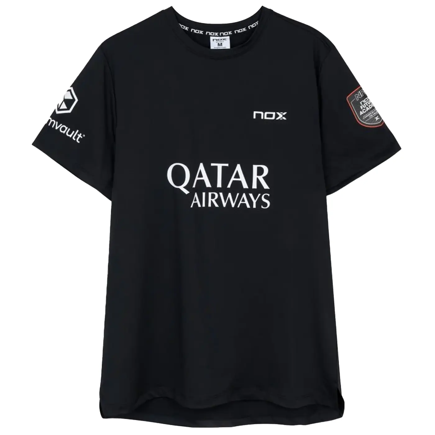 La camiseta de pádel NOX Sponsors AT10 Tapia 2026 Negra es una edición oficial de jugador diseñada para rendimiento y movilidad. Con tecnología Balance Fresh y tejido elástico, ofrece transpirabilidad y libertad de movimiento. Inspirada en Agustín Tapia, combina una estética profesional con comodidad ligera para partidos de pádel de alta intensidad.