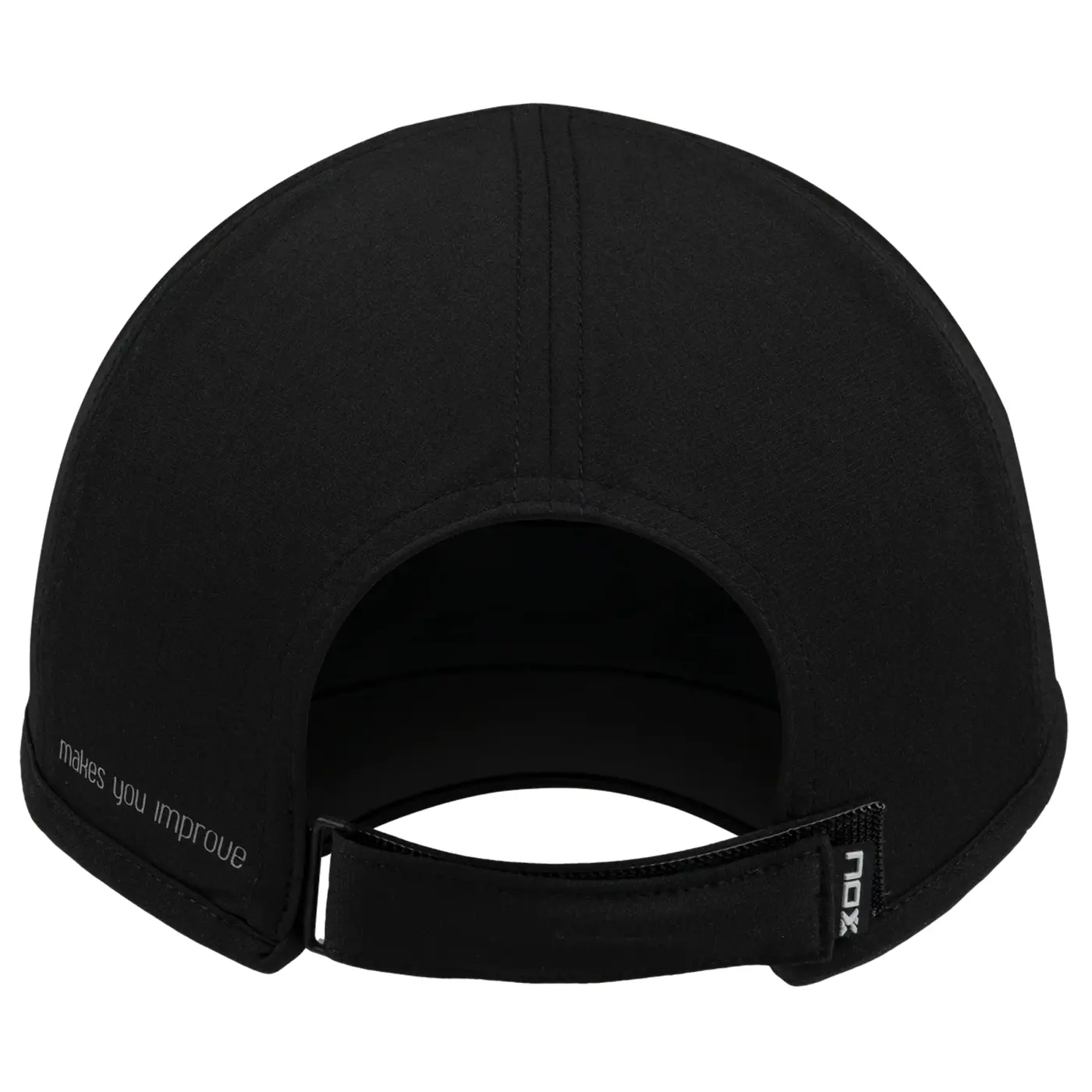 La gorra de pádel NOX Black White es una gorra ligera de rendimiento diseñada para ofrecer comodidad, protección solar y control del sudor en pista. Fabricada con tejido transpirable y cierre ajustable, garantiza un ajuste seguro durante el juego. Ideal para entrenamientos y partidos, ayuda a mantener la concentración mientras proporciona una comodidad fiable.