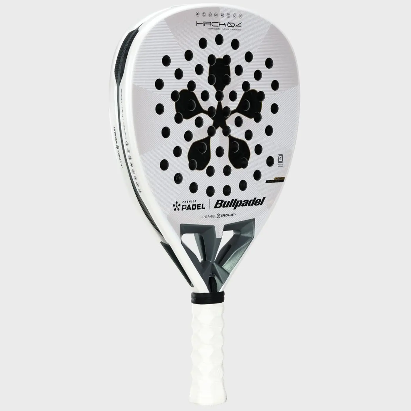 The BULLPADEL Hack 04 Padel Racket 2026 evolves the iconic Hack series with a new concept of dynamic power. Designed for high-level players, this racket converts swing speed into powerful and precise shots. Part of the Premier collection, it combines advanced aerodynamics, structural rigidity, and customizable performance.