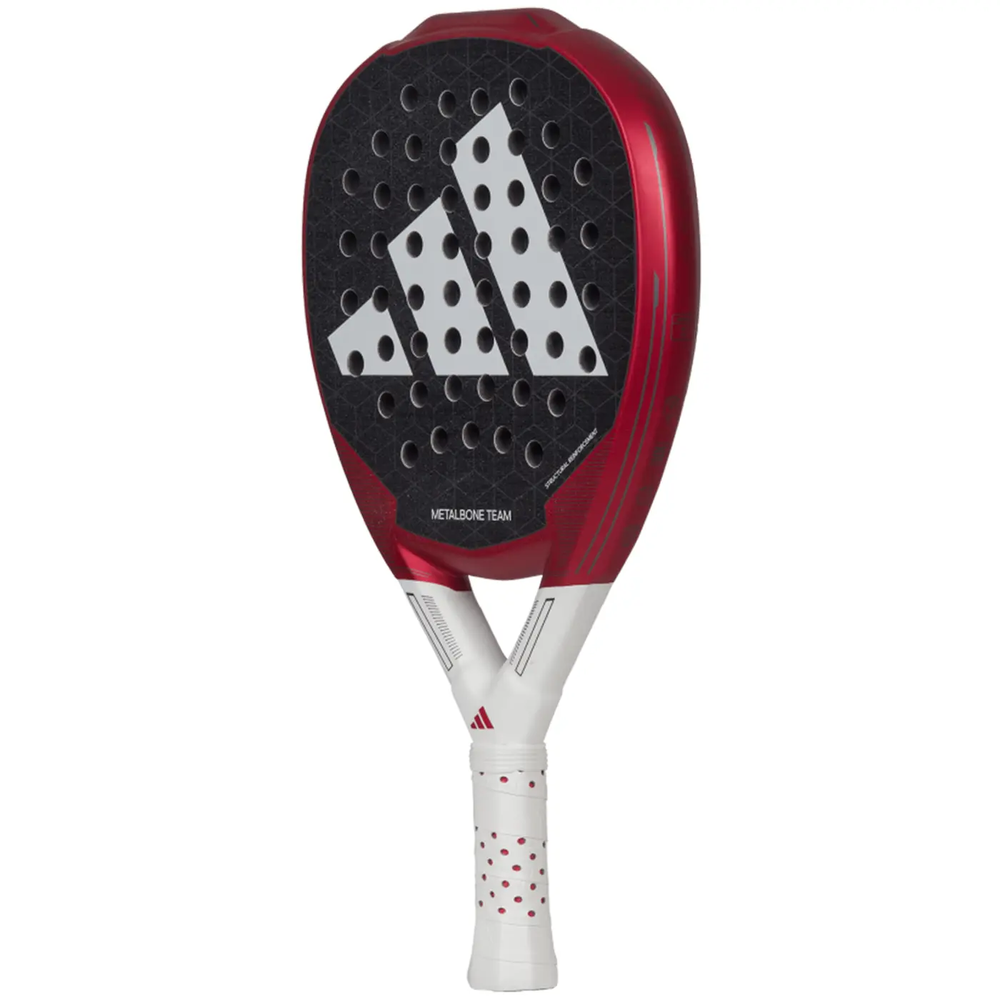 La Adidas METALBONE TEAM 3.3 2024 responde a cualquier reto que se le plantee. Es una pala para jugadores de alto nivel. En ella encontrarás la mejor aliada en el juego de ataque gracias a las tecnologías Octagonal Structure y Structural Reinforcement, que aseguran una rigidez absoluta. La combinación de materiales de la fibra de vidrio en la superficie y la goma EVA Soft Performance en el interior garantiza el mejor equilibrio. La rugosidad en la superficie del Spin Blade Gritt sumada a la disposición de los agujeros del Smart Holes Curve proporciona una capacidad incomparable de generar efectos.