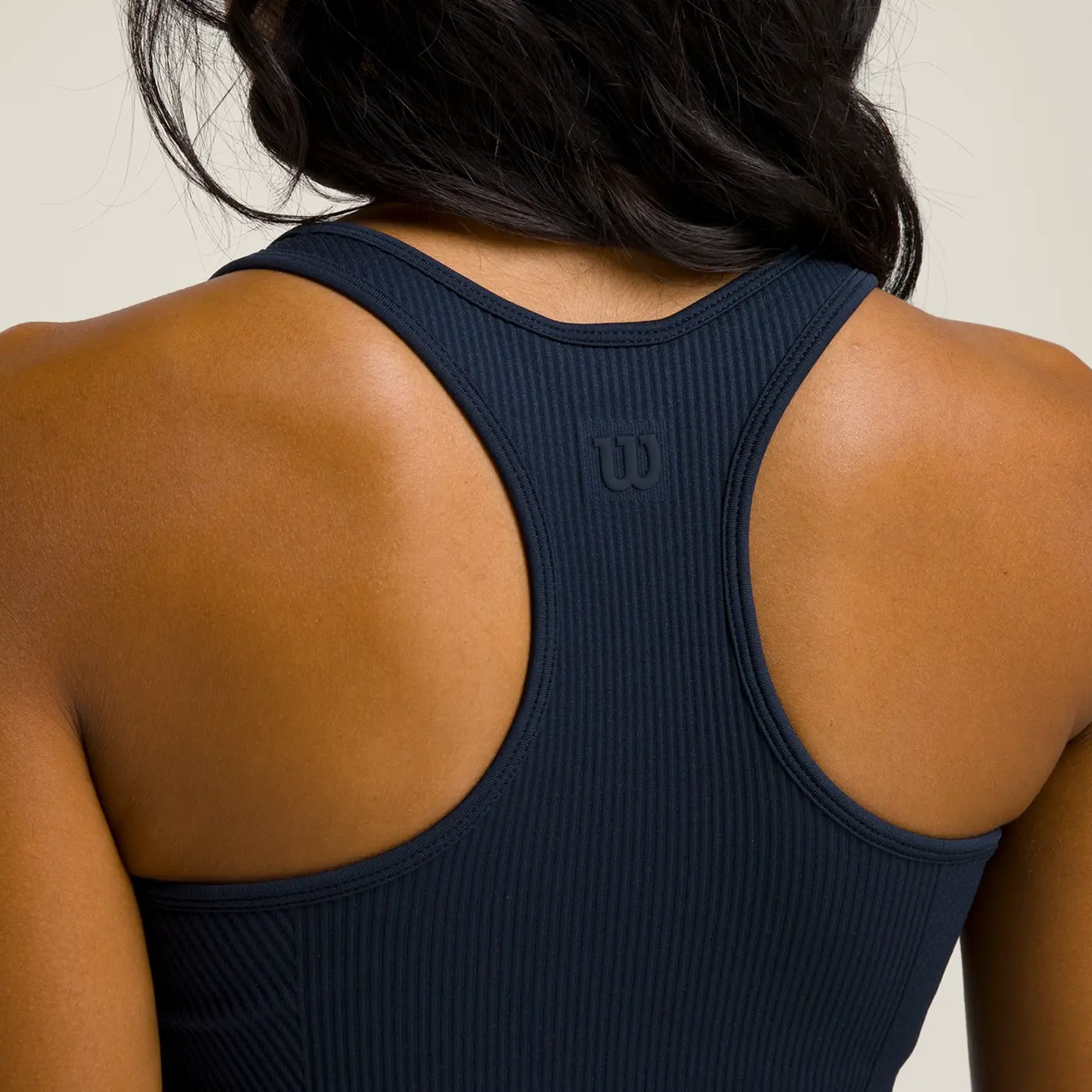 El corte a la altura de la cintura, junto con la banda inferior acanalada y las texturas rib estilizadas, mantiene el brami perfectamente en su sitio incluso durante movimientos rápidos y exigentes en pista. El diseño racerback de tirantes finos garantiza una movilidad total de los hombros, ideal para el juego dinámico del pádel.
